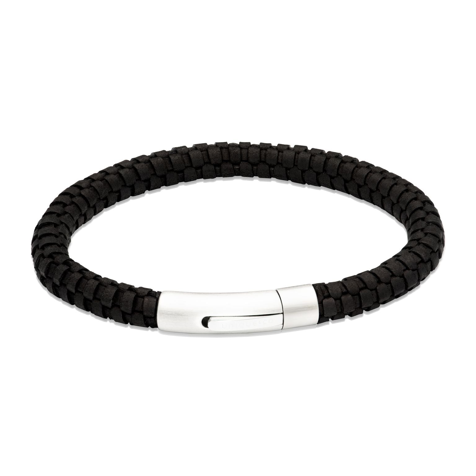 Gents black leather bracelet with Matte finished stainless steel clasp
