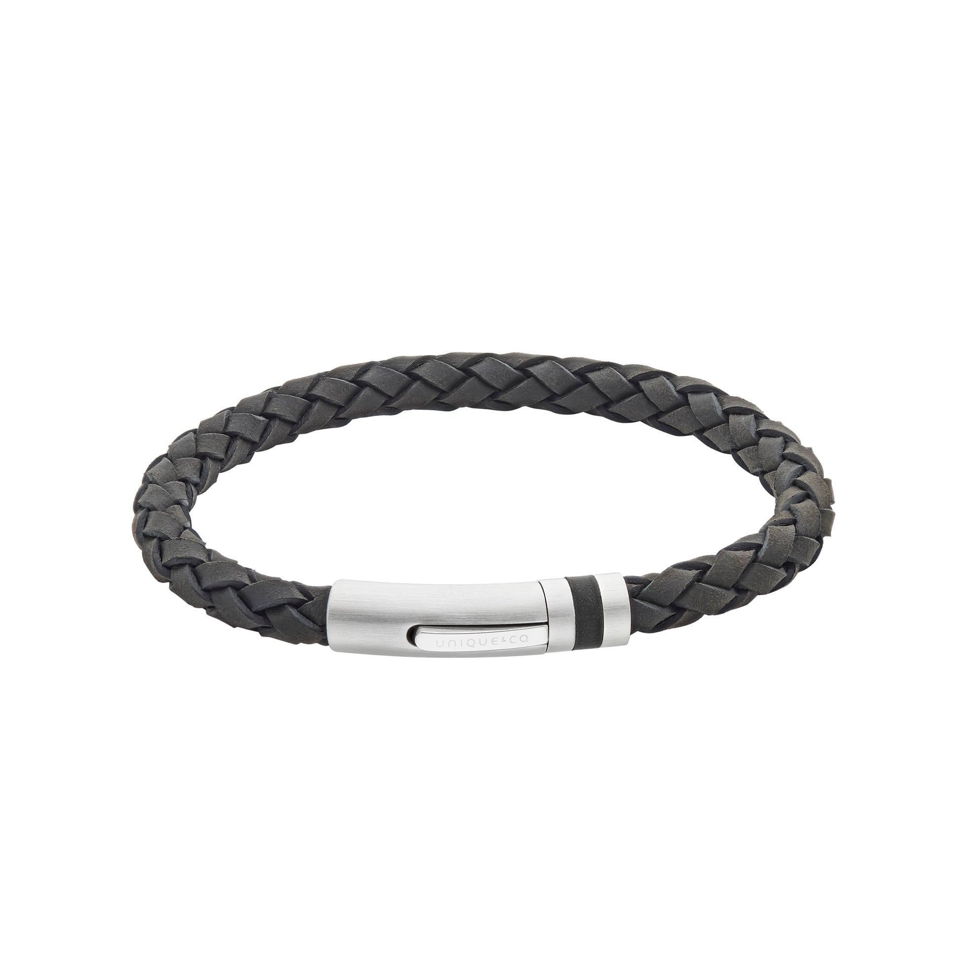 Gents Black leather bracelet with stainless steel clasp 23cm