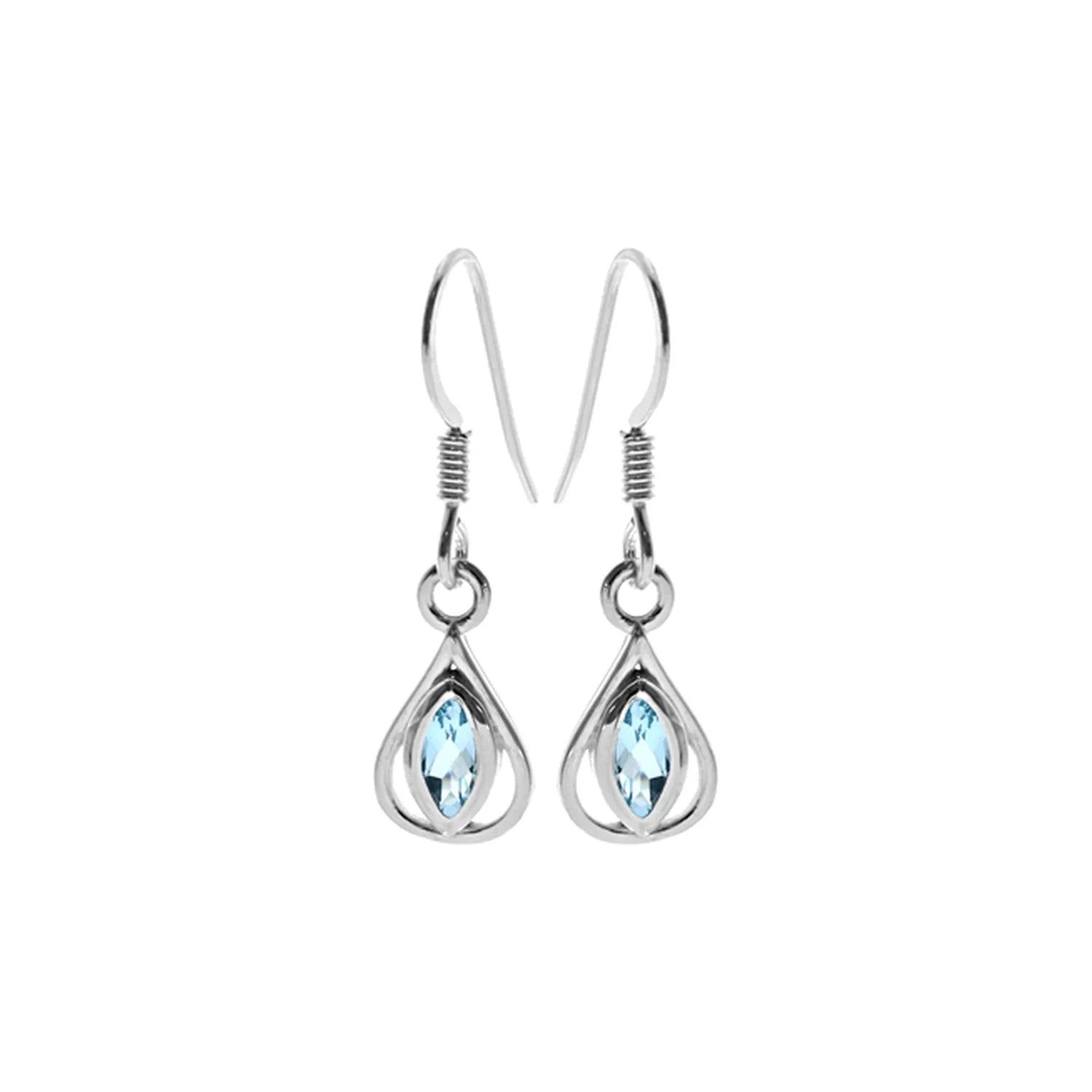 Sterling Silver and faceted marquise cut Blue Topaz teardrop drop earrings on hook wire