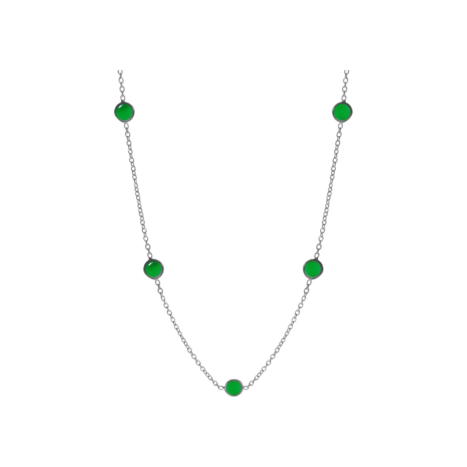 Sterling Silver and Green Agate bezel set five stone necklace.