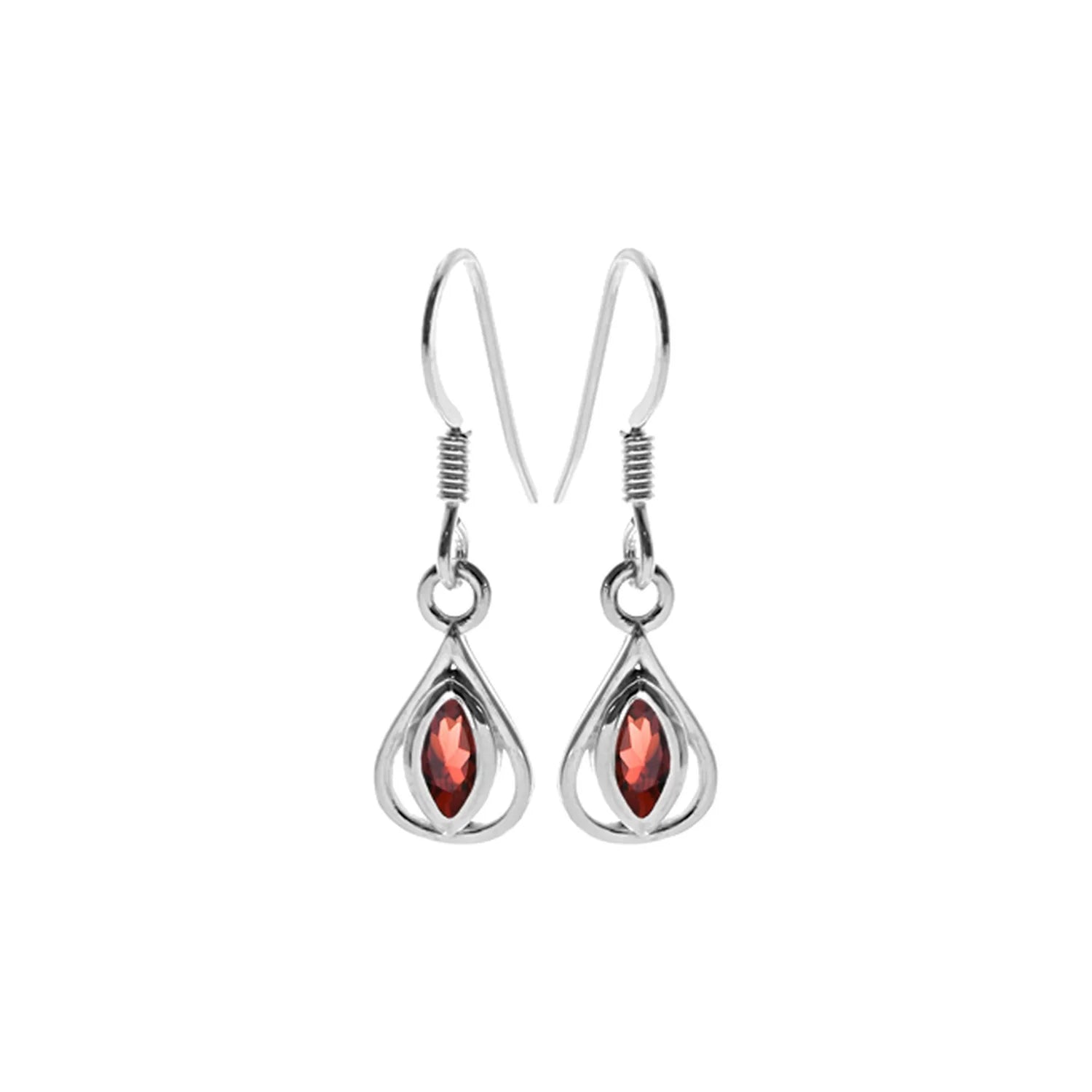 Sterling Silver and marquise faceted Garnet open teardrop drop earrings on hook wires