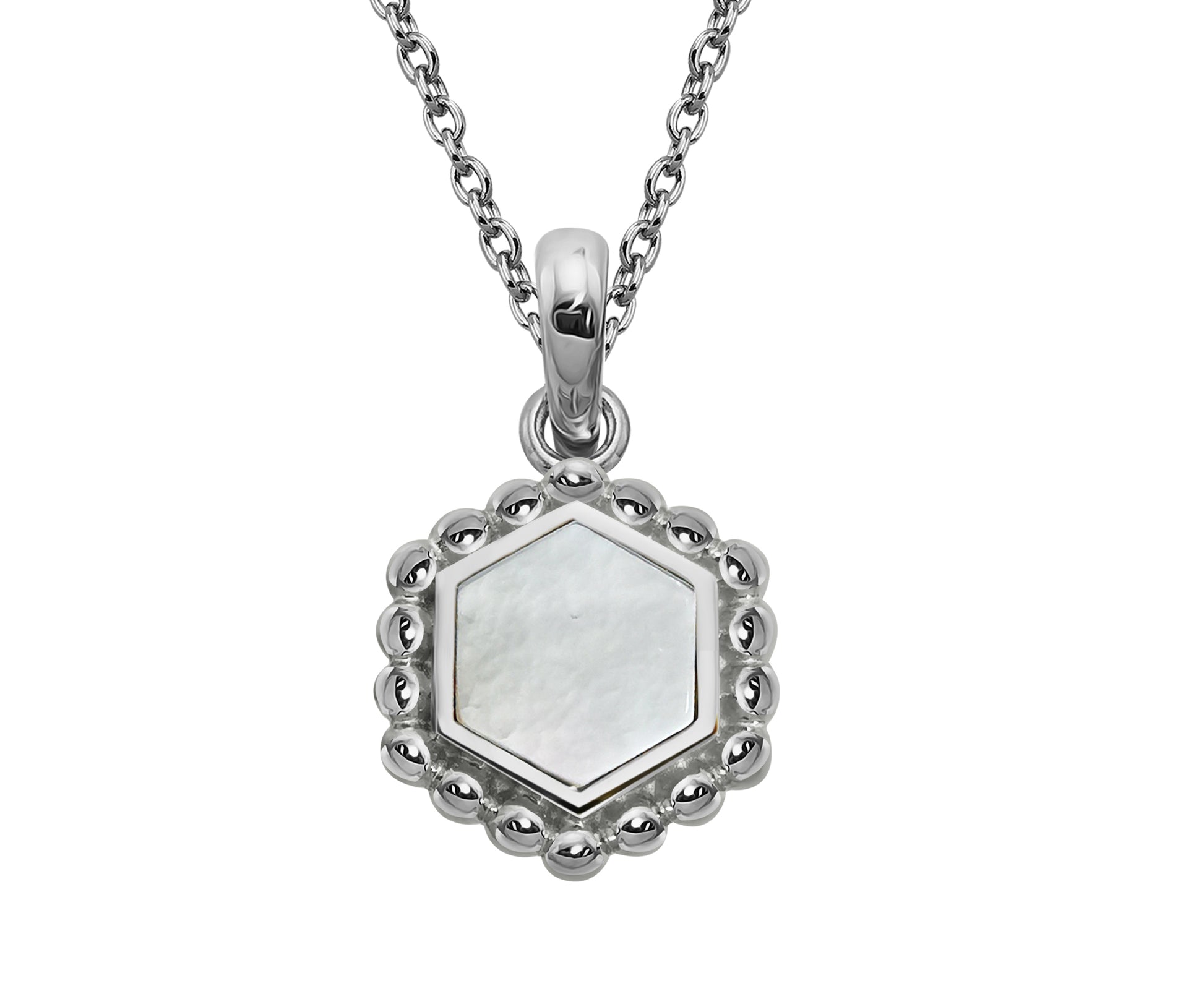 Silver and Mother of Pearl hexagon shaped pendant with beaded edge