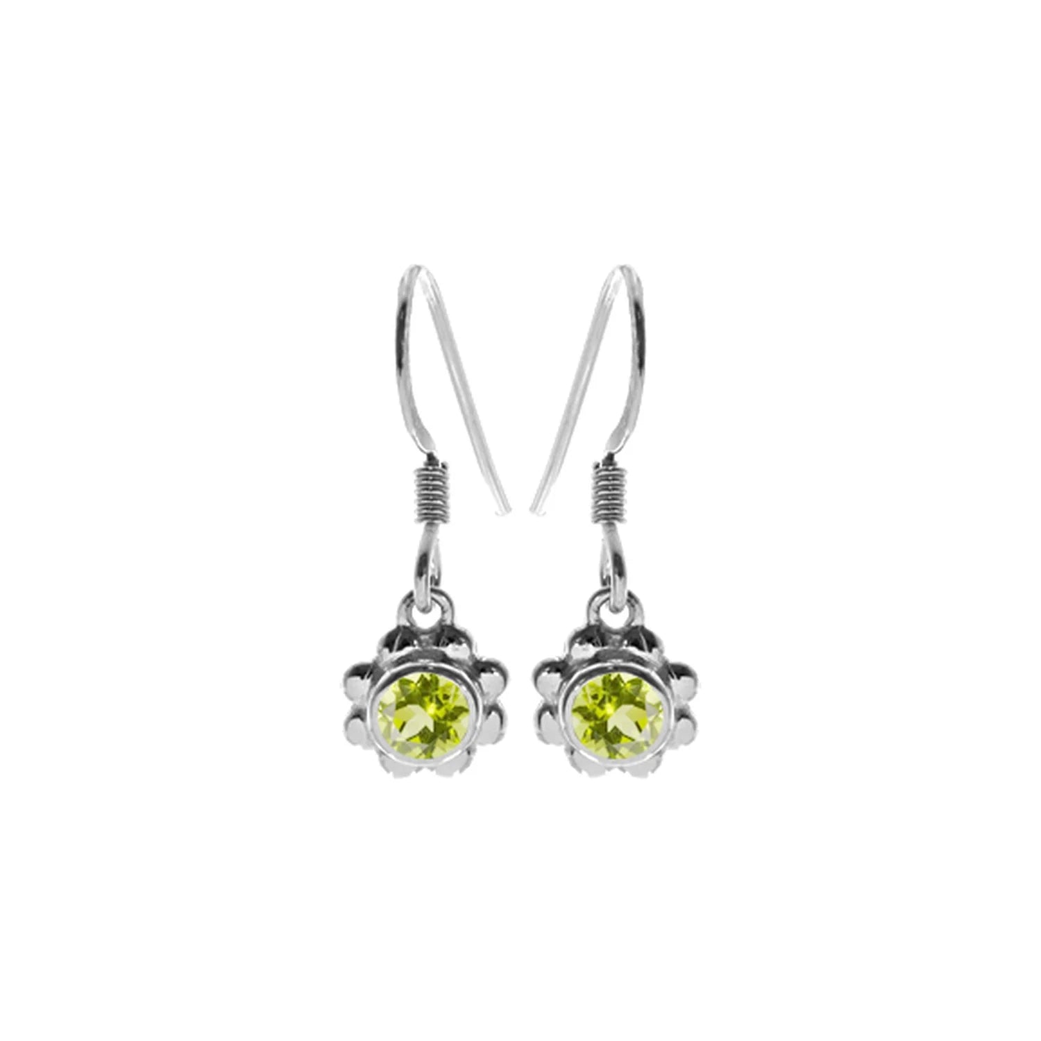 Sterling Silver and faceted bezel set Peridot flower drop earrings on hook wire
