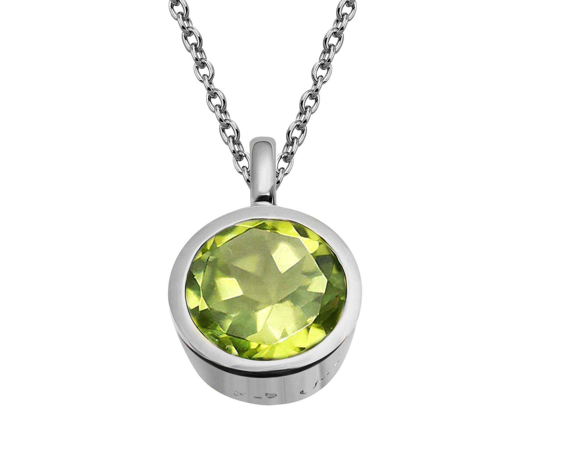 Silver and Peridot pendant on 18'' silver chain with rhodium plating