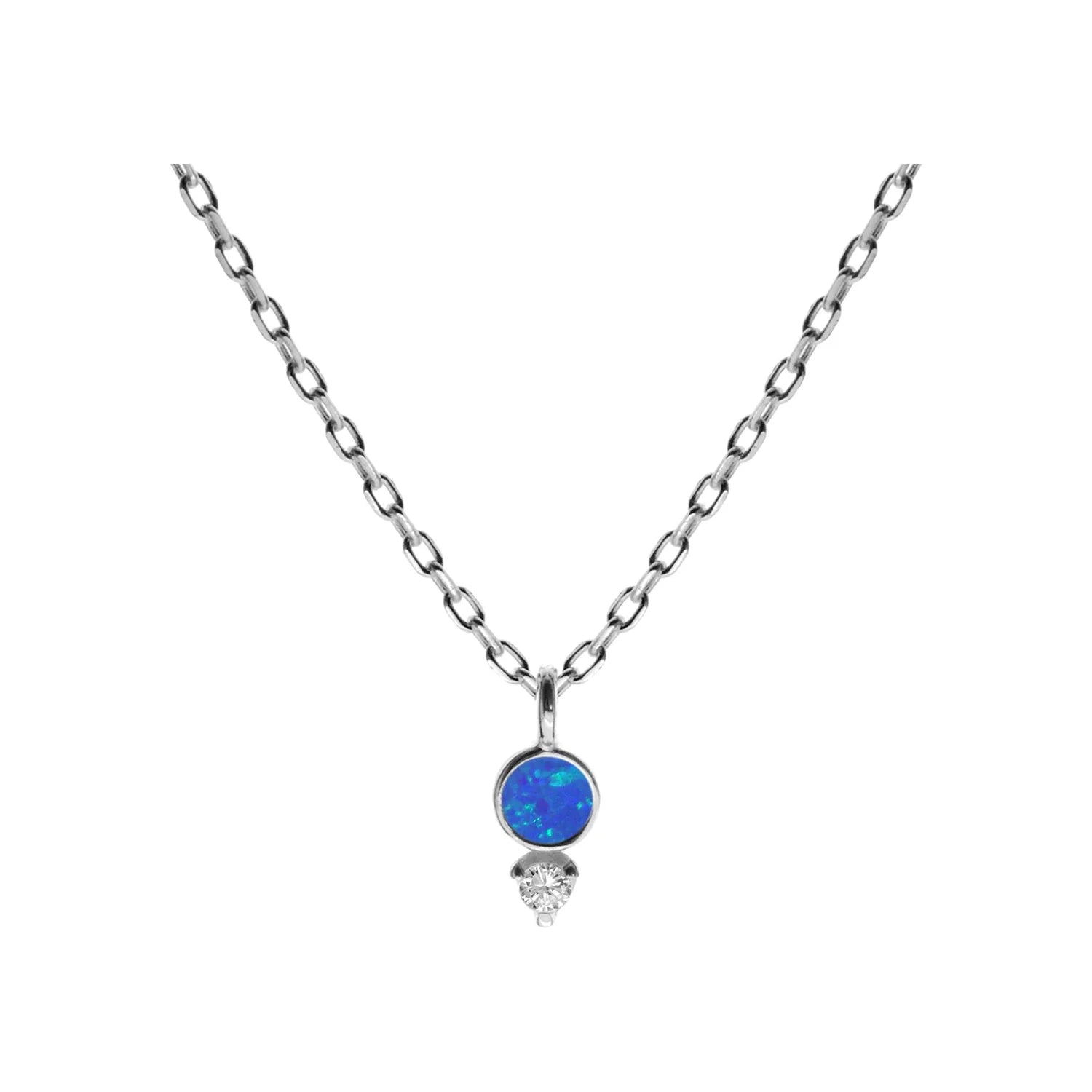 Silver, Blue Opalique and Cubic Zirconia round pendant and chain