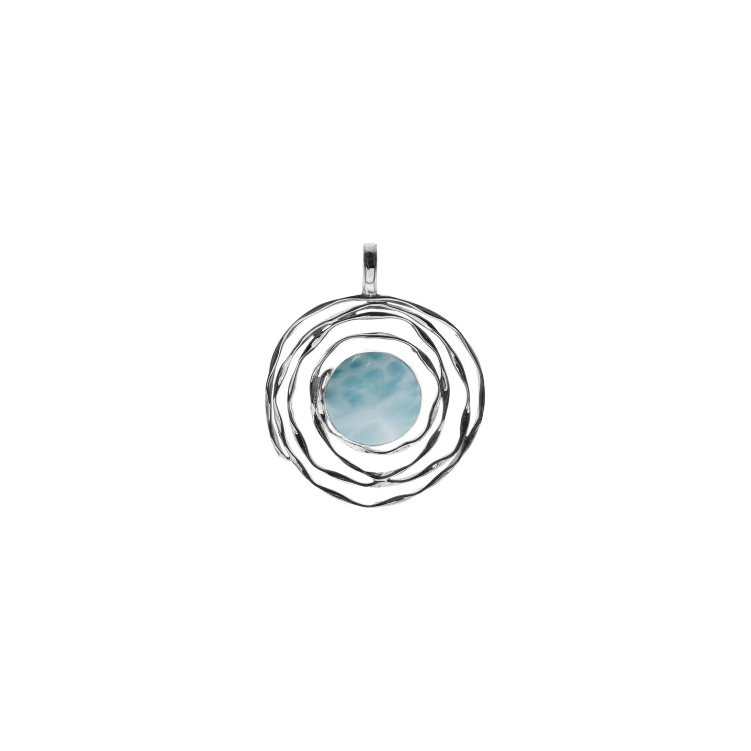 Silver large multi layered twisted round pendant with a centre Larimar on an 18" silver chain