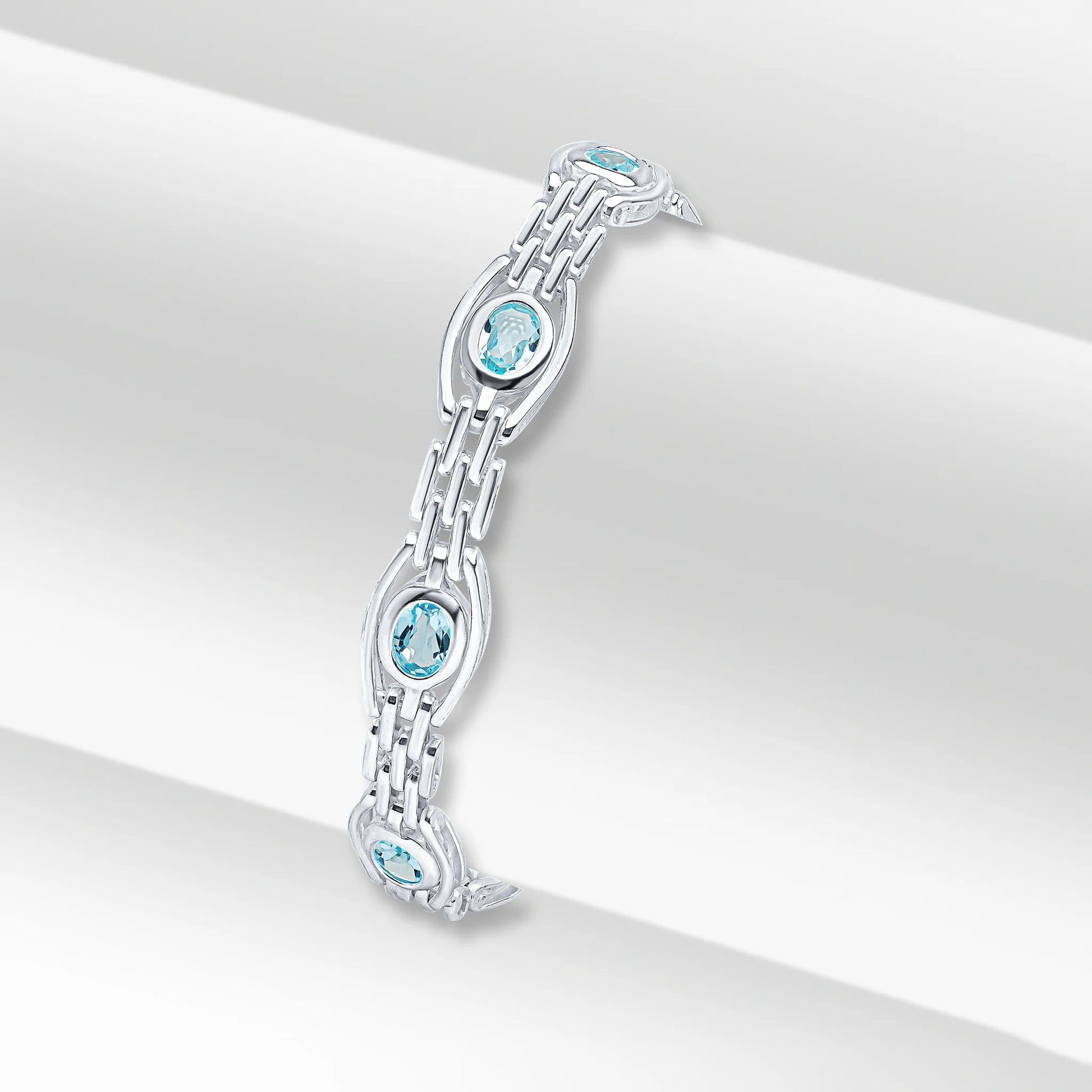 Sterling Silver 9.5mm Swiss Blue Topaz Gate Chain Bracelet (7.5")